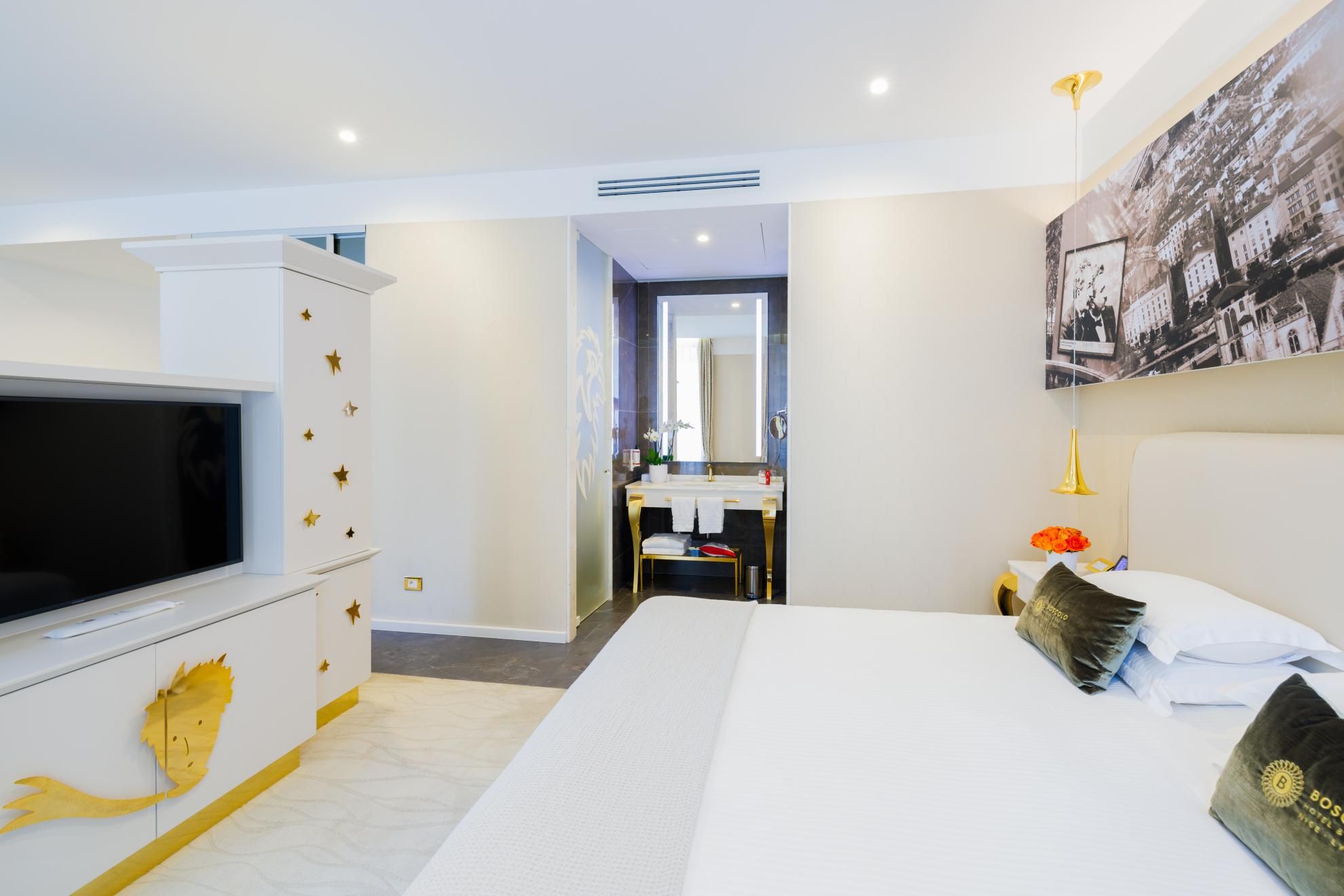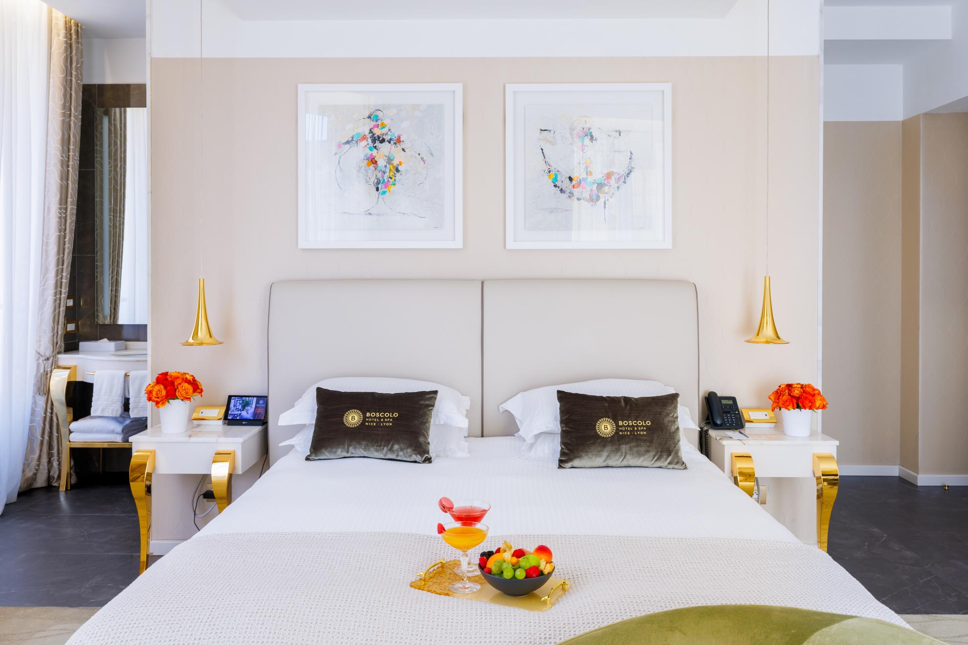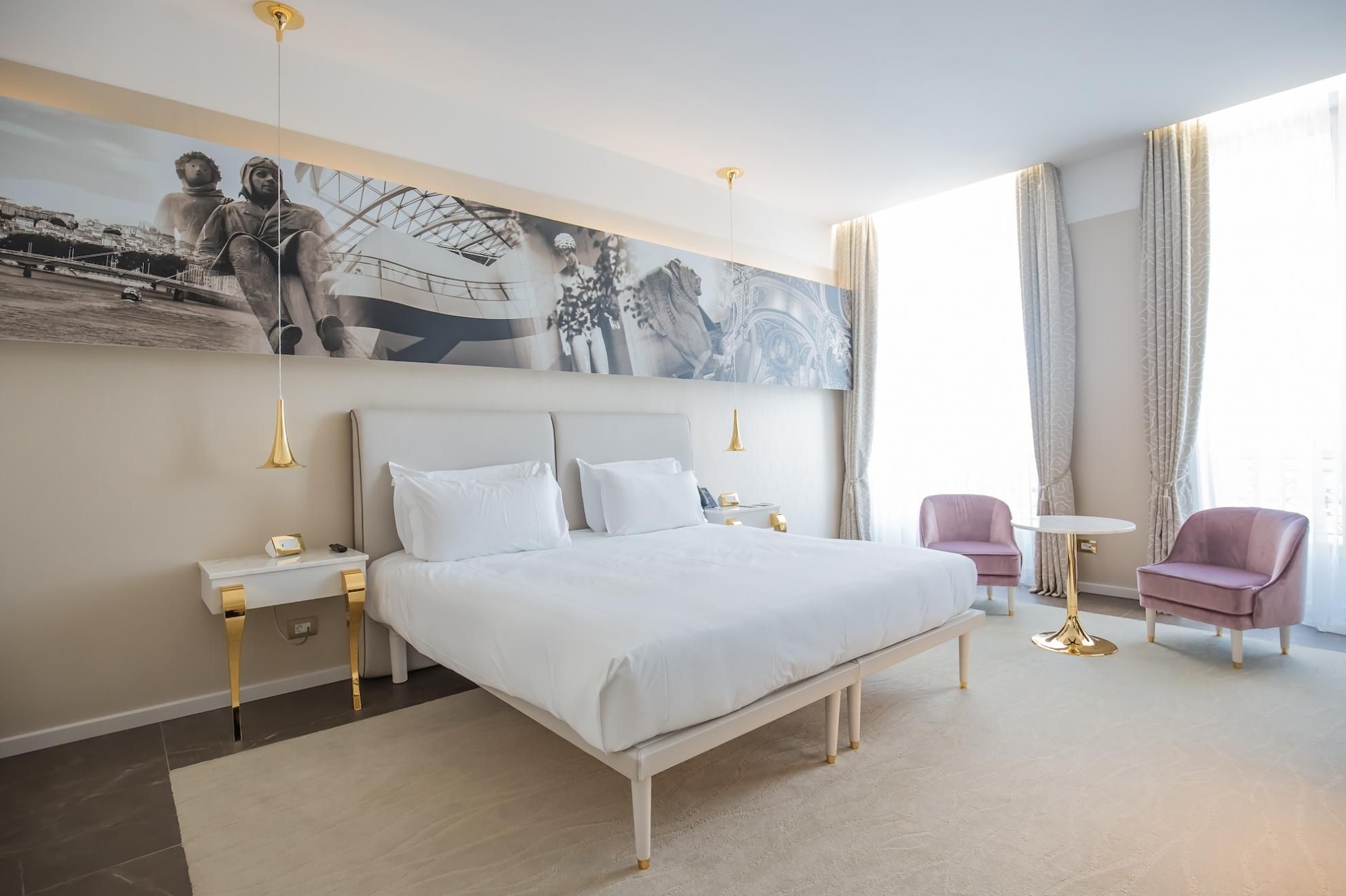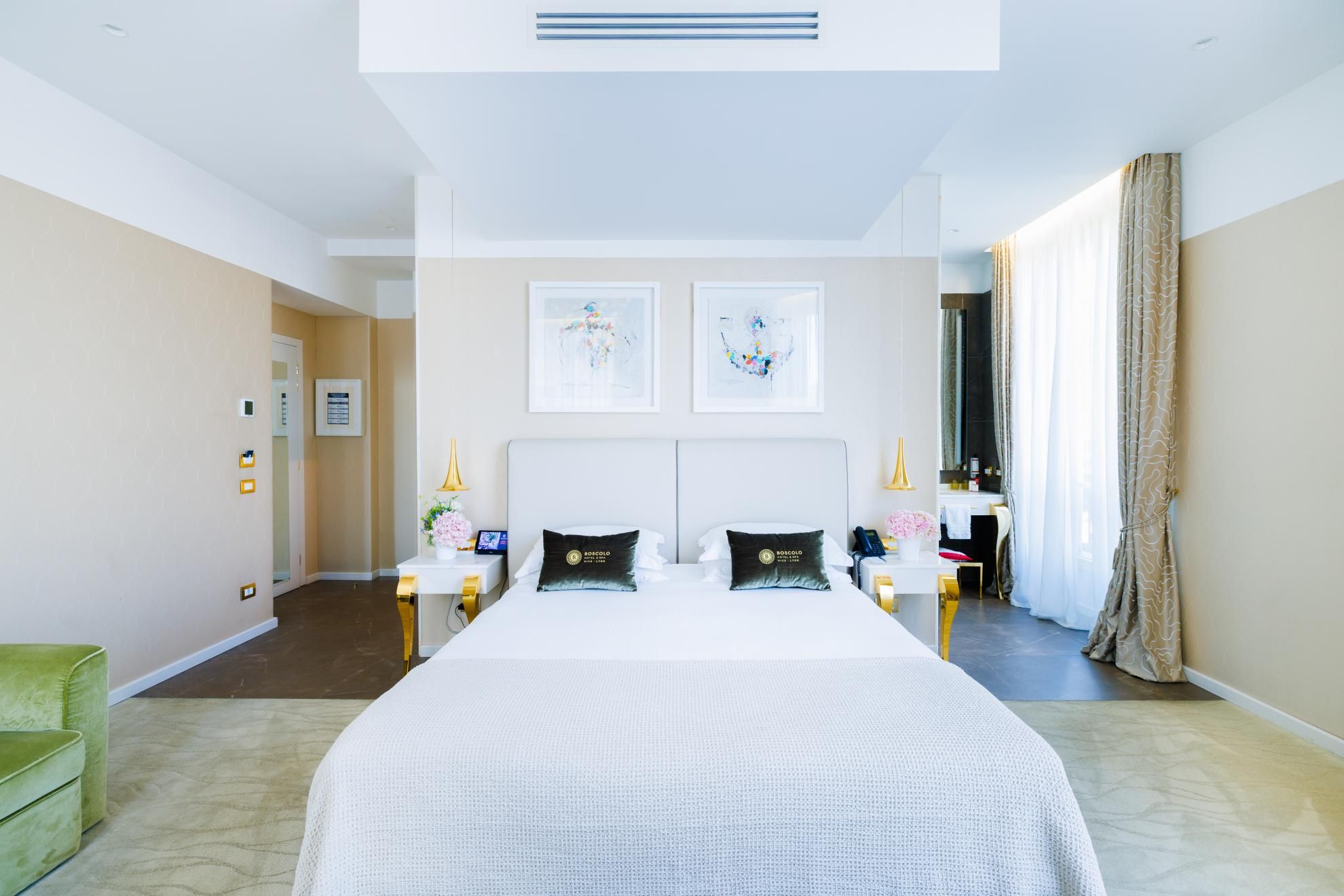 Chaque chambre est conçue pour offrir une expérience exclusive, alliant le charme italien classique à des touches de modernité raffinée. La lumière naturelle inonde l’environnement, accentuant les détails raffinés du mobilier, tandis que les tissus doux et les finitions aux tons relaxants créent une atmosphère sereine.
